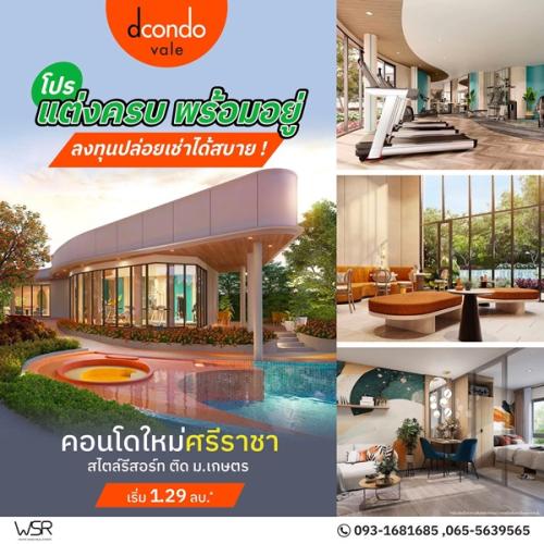 ดีคอนโด เวล ศรีราชา แต่งครบ พร้อมเฟอร์ ใกล้มหาลัยเกษตร ศรีราชา มากที่สุด 240 ม. โทร 0931681685