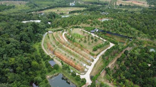 สวนทุเรียนขั้นบันได พร้อมบ้านพักบนเนินเขา สไตส์รีสอร์ท