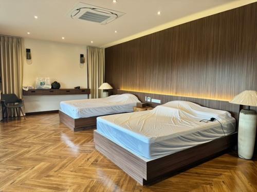 ห้องนอนมี 2 เตียง ห้องน้ำ 2 ห้อง